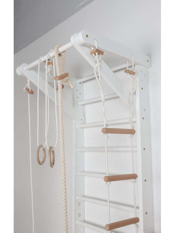 Escalera de pared blanca con accesorios – Centro de fitness doméstico versátil para niños y adultos