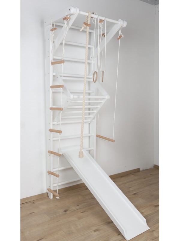 Espaldera infantil blanca con accesorios – gimnasio de madera certificado para toda la familia