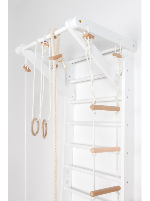 Escalera de pared blanca con accesorios – Centro de fitness doméstico versátil para niños y adultos
