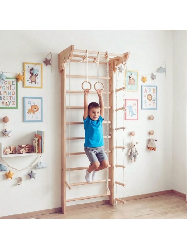 Con esta espaldera multifuncional tendrás un gimnasio natural en casa. Los niños disfrutarán de horas de juego activo y desarrollo motriz, mientras los adultos podrán entrenar fuerza, movilidad y mantener un estilo de vida saludable sin salir de casa.
