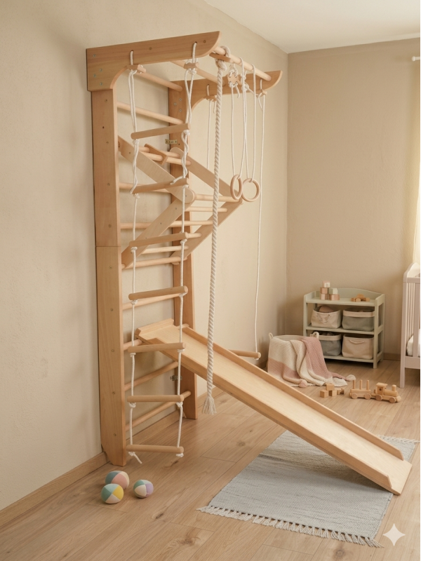 Espaldera infantil con accesorios – gimnasio de madera certificado para toda la familia