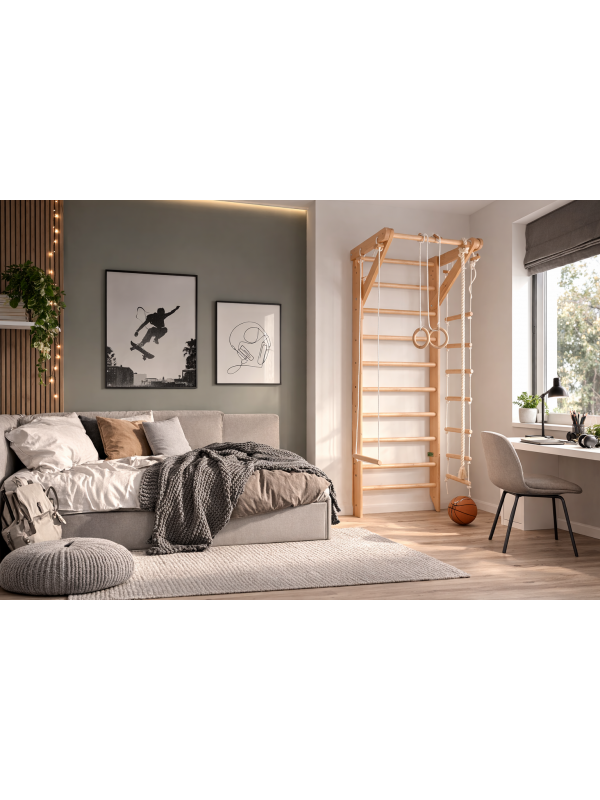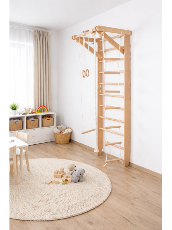 ¿Buscas un equipo multifuncional que motive tanto a niños como adultos? Nuestra espaldera con accesorios es la elección perfecta. Fabricada en Europa con materiales naturales de alta calidad, ofrece una experiencia de entrenamiento y juego segura, estable y versátil, sin ocupar demasiado espacio.