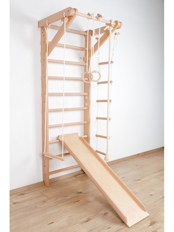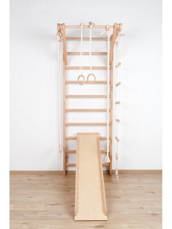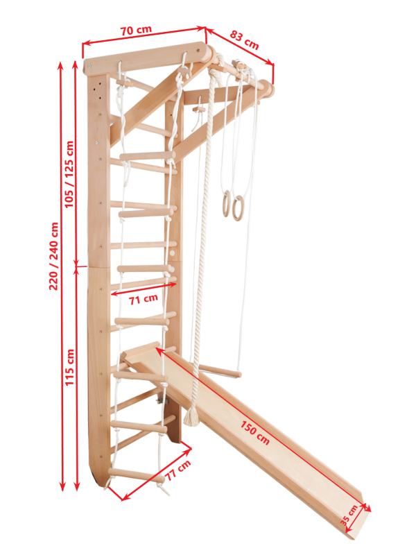 ¿Buscas un equipo multifuncional que motive tanto a niños como adultos? Nuestra espaldera con accesorios es la elección ideal para tu hogar. Fabricada en Europa con materiales naturales de alta calidad, garantiza seguridad y durabilidad. Su diseño compacto permite instalarla en cualquier espacio, ofreciendo diversión y ejercicio sin ocupar demasiado lugar.