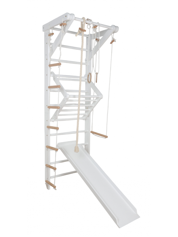 Espaldera infantil blanca con accesorios – gimnasio de madera certificado para toda la familia